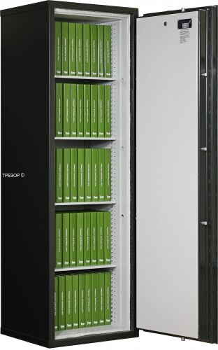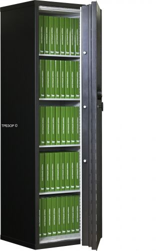 Сейф оснащен полками расчитанными на хранение документов в папках A4 (количеством до 45 штук). Возможна установка опций: запираемых отделений высотой 150 мм или 350 мм, выдвигающихся лотков для хранения ювелирных украшений, часов, монет и других ценностей.