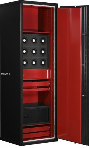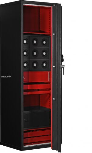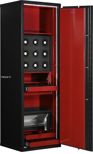 Сейф KASO PTK E3 350E в специальном исполнении. Выглядя снаружи как обычный, ничем не примечательным=й офисный сейф, внутри он оборудован таким образом, чтобы удовлетворить все потребности своего хозяина.