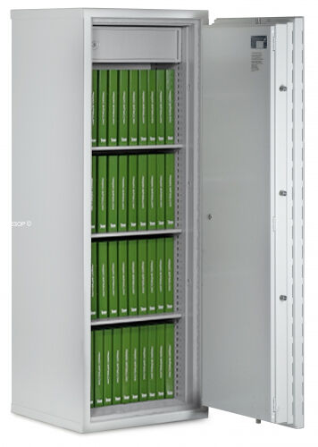 Базовая версия огневзломостойкого сейфа 4-го класса KASO PTK E4-340DK. Запирание на два перепрограммируемых ключевых замка. Другие версии могут комплектоваться любым сочетанием ключевых и электронных замков или продвинутыми системами с управлением двумя электронными замками с одной клавиатуры.