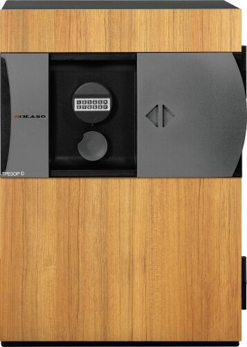 Огнестойкий и взломостойкий сейф Kaso E2 309 оптимален для офиса и дома. Декоративная панель "мальдивский тик" и чёрный корпус.