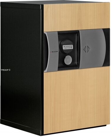 Сейф KASO E2 (второго класса взломостойкости) размерности 320 офисный, огнестойкость 60 минут. Чёрный корпус с декоративной панелью "берёза".
