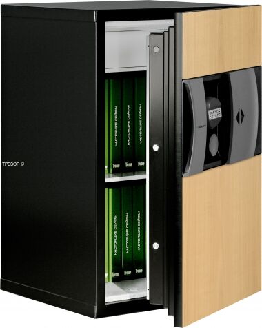 Популярный сейф для руководителя KASO E2-320 удачно смотрится и в домашнем кабинете. Передняя панель сейфа со скрывающей замки от посторонних глаз шторкой может быть окрашена в любой цвет палитры RAL или быть исполнена в фактуре берёзы, вишни, дуба, красного дерева, венге, ореха или любого другого дерева по заказу. В базовой комплектации в распоряжении владельца запираемое отделение высотой 150 мм и место для двух рядов папок, разделённое переставляемой полкой. Доступные опции: выдвигаемые ящики для картотечных задач, специальные держатели для массивов ключей, модуль для магнитных носителей или изготовленные по индивидуальному заказу вставки для ювелирных украшений.