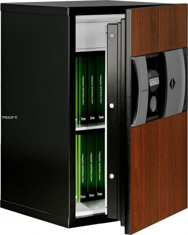 Популярный сейф для руководителя KASO E2-320 удачно смотрится и в домашнем кабинете. Передняя панель сейфа со скрывающей замки от посторонних глаз шторкой может быть окрашена в любой цвет палитры RAL или быть исполнена в фактуре берёзы, вишни, дуба, красного дерева, венге, ореха или любого другого дерева по заказу. В базовой комплектации в распоряжении владельца запираемое отделение высотой 150 мм и место для двух рядов папок, разделённое переставляемой полкой. Доступные опции: выдвигаемые ящики для картотечных задач, специальные держатели для массивов ключей, модуль для магнитных носителей или изготовленные по индивидуальному заказу вставки для ювелирных украшений.