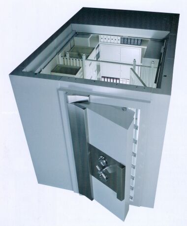 Сборный модульный макси-сейф или мини-хранилище на базе банковской двери KASO VD7 и панелей модульного хранилища
