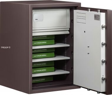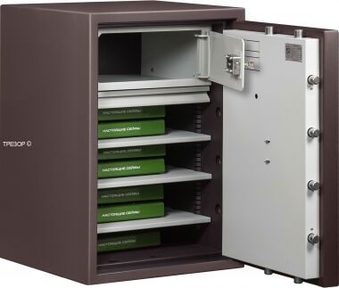 Современные электронные замки (возможен update на защищённую от любых спецслужб версию), 12 ригелей диаметром 25 мм, оригинальная система защиты от высверливания, совмещённая с блокировками и полная сертификация в соответствии с европейским стандартом EN 1143 - всё это работает на Вашу безопасность.