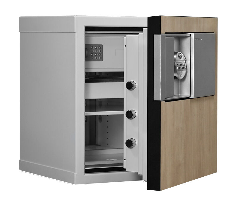 Премиум сейф серии KASO KEEPS модели E2-507 с панелью клён и белым корпусом, аналогичен по размерам модели KASO E2-308. Второй класс взломостойкости и 60 минут огнестойкости.