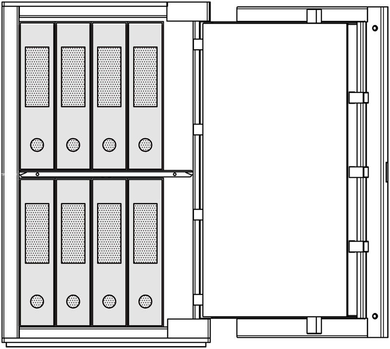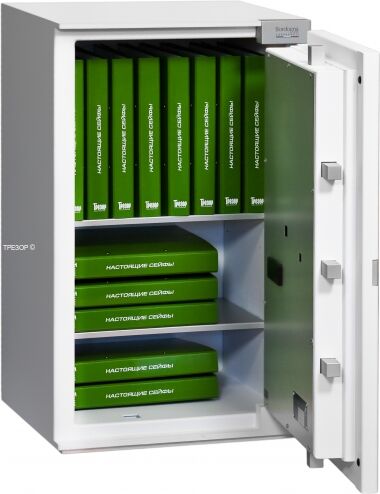 Стандартный интерьер состоит из двух полок с удобным шагом по высоте внутри сейфа, что при хранении папок с документами позволяет выбрать несколько разных вариантов их размещения. Премиум качество окраски позволяет не прятать сам сейф от посторонних глаз и не бояться за сохранность хранящихся внутри ценностей.